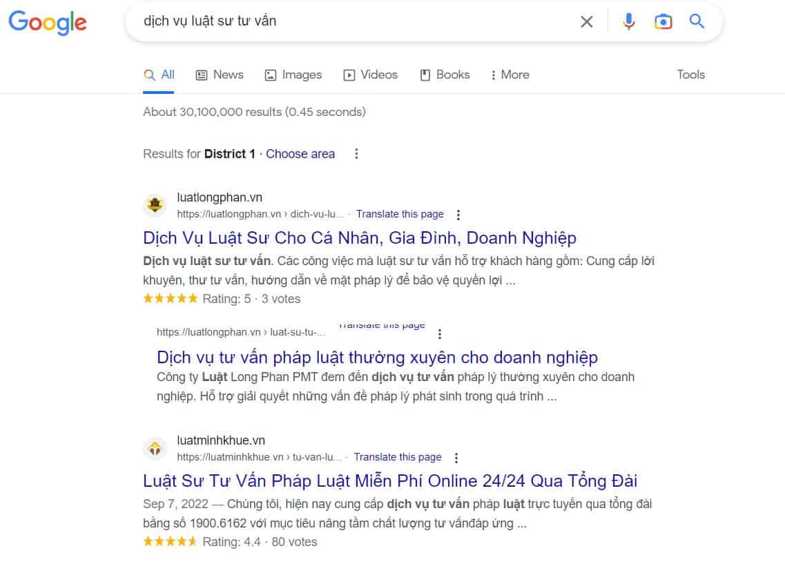 Bạn có thể thấy, khi tìm kiếm “dịch vụ luật sư tư vấn”, khách hàng tiềm năng không thật sự muốn thuê luật sư ngay lập tức. Mặc dù họ có tiềm năng sẽ thuê luật sư, nhưng khách hàng vẫn cần gọi điện cho doanh nghiệp để thảo luận thêm về tình hình thực tế.